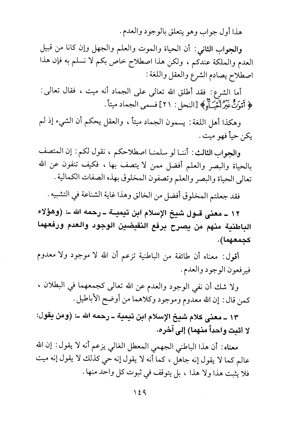 12 ـ معنى قول شيخ الإسلام ابن تيمية ـ رحمه الله ـ: "وهؤلاء الباطنية منهم من يصرّح برفع النقيضين: الوجود والعدم، ورفعهما كجمعهما".