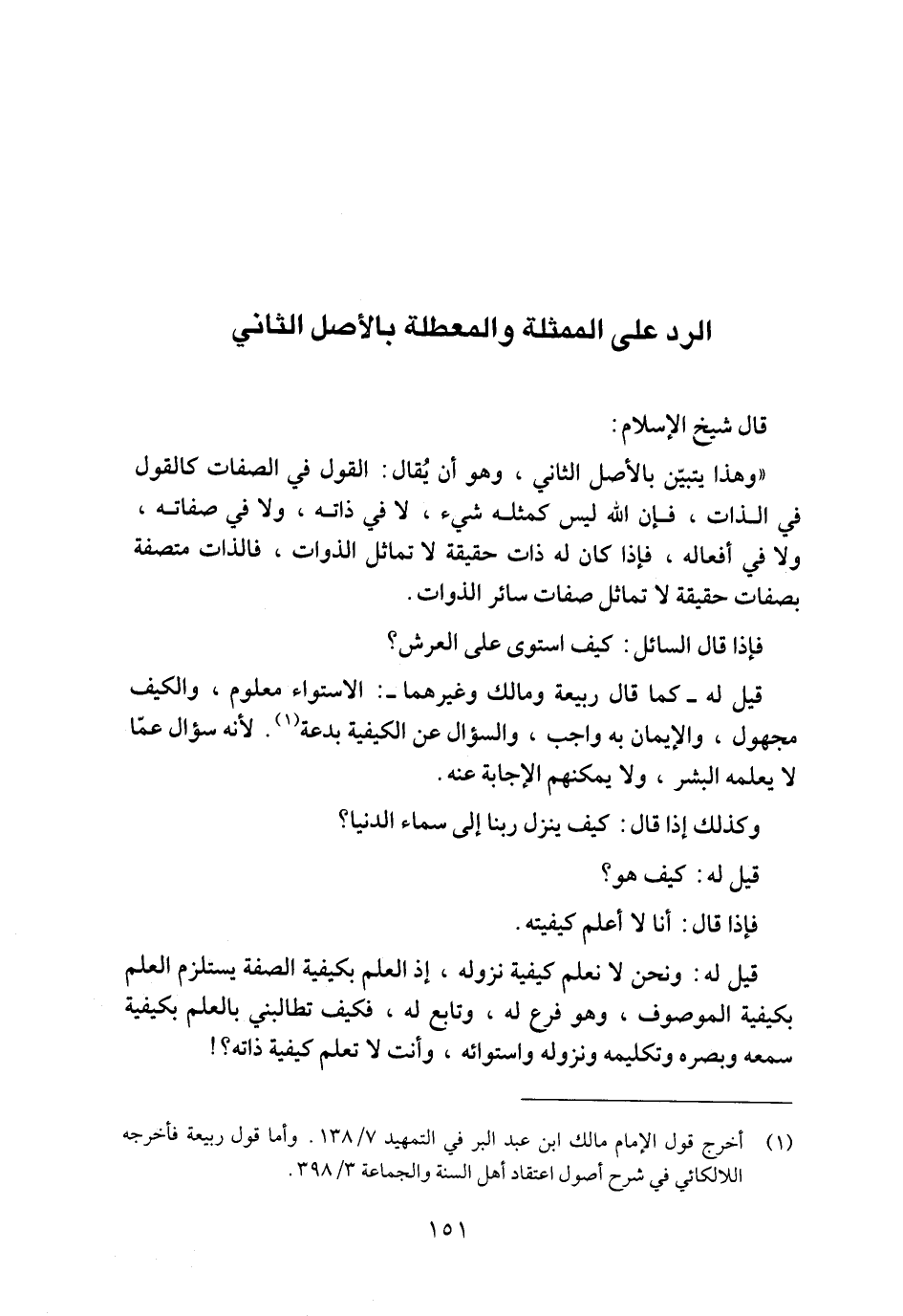 الرد على الممثلة والمعطلة بالأصل الثاني
