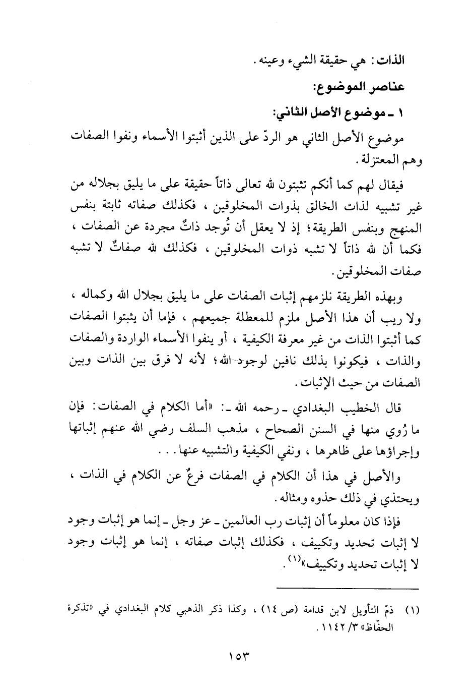 1 ذمّ التأويل لابن قدامة (ص14) ، وكذا ذكر الذهبي كلام البغدادي في تذكرة الحفّاظ (3/1142) .