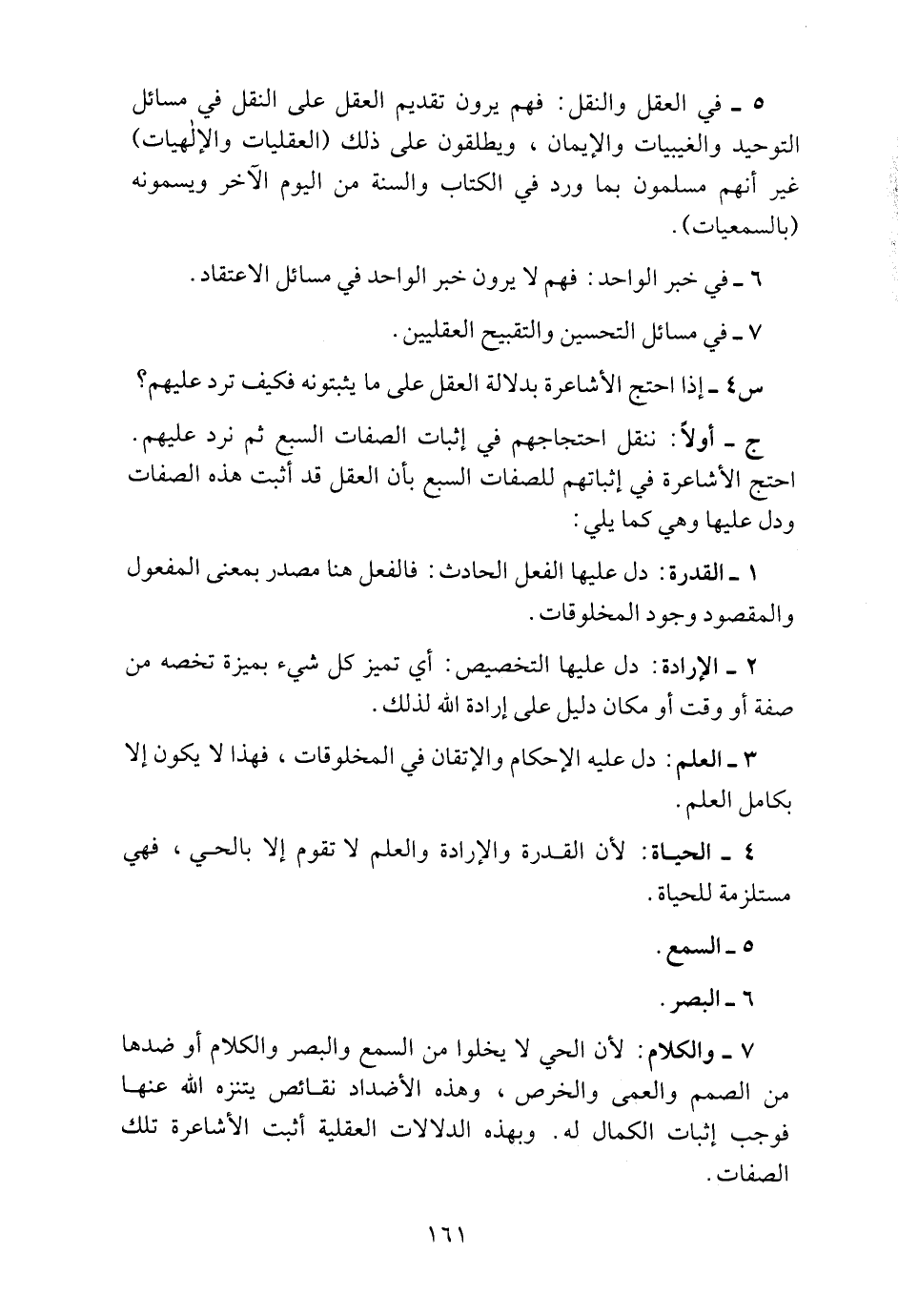 ج ـ أولاً: ننقل احتجاجهم في إثبات الصفات السبعة ثم نرد عليهم.