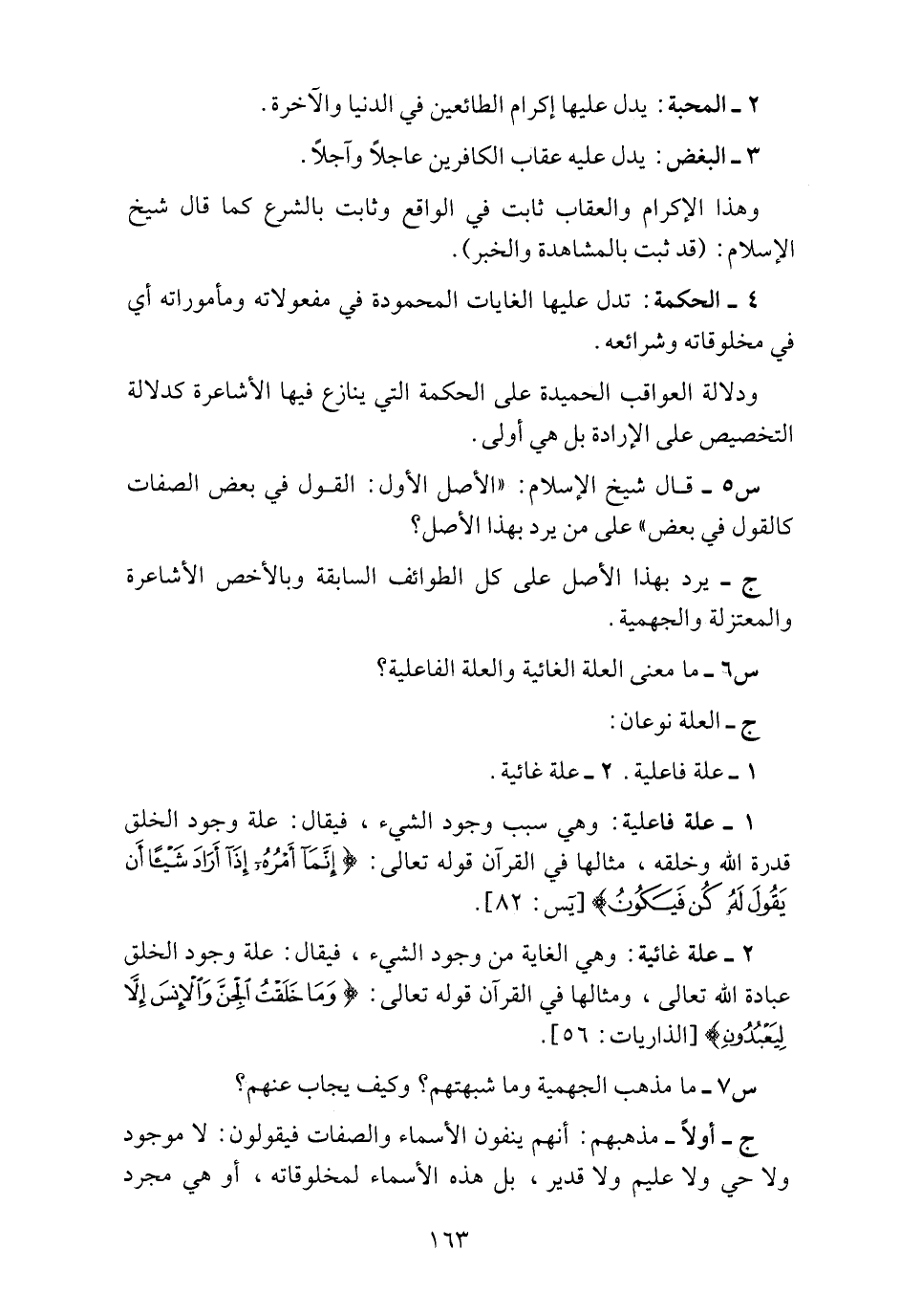 س5 ـ قال شيخ الإسلام: "الأصل الأول: القول في بعض الصفات كالقول في بعض" على من يرد بهذا الأصل؟
