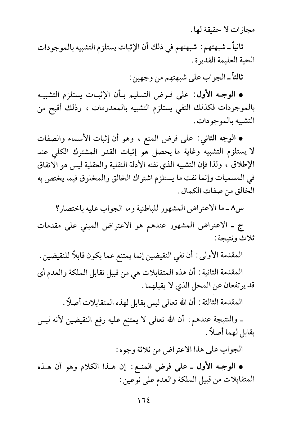 • الوجه الأول: على فرض التسليم بأن الإثبات يستلزم التشبيه بالموجودات فكذلك النفي يستلزم التشبيه بالمعدومات، وذلك أقبح من التشبيه بالموجودات.