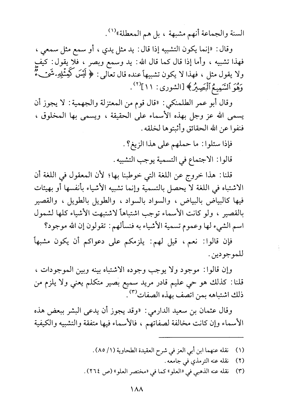 السنة والجماعة أنهم مشبهة، بل هم المعطلة"1.