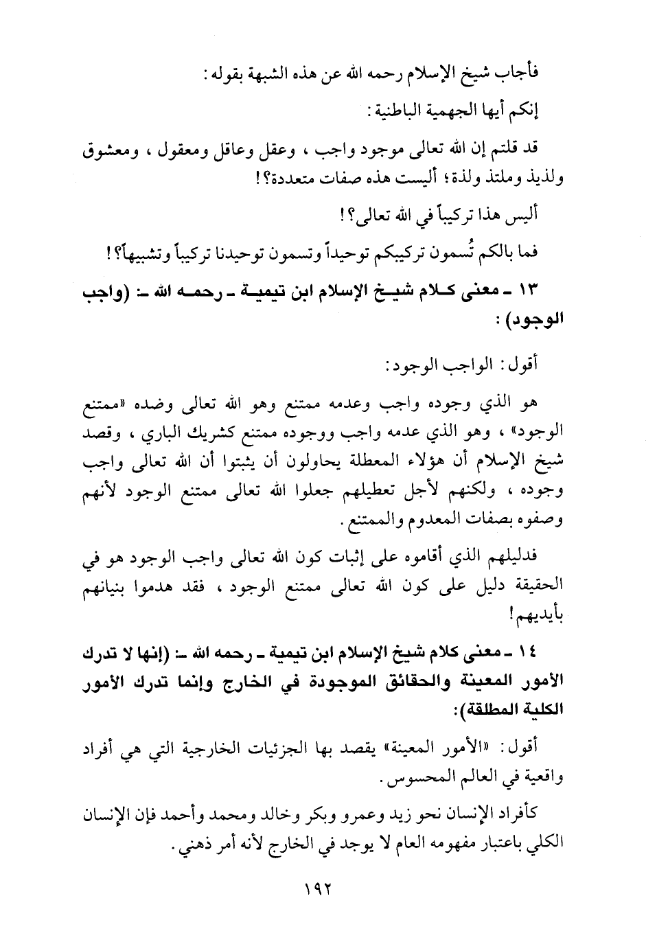 13 ـ معنى كلام شيخ الإسلام ابن تيمية ـ رحمه الله ـ: "واجب الوجود":