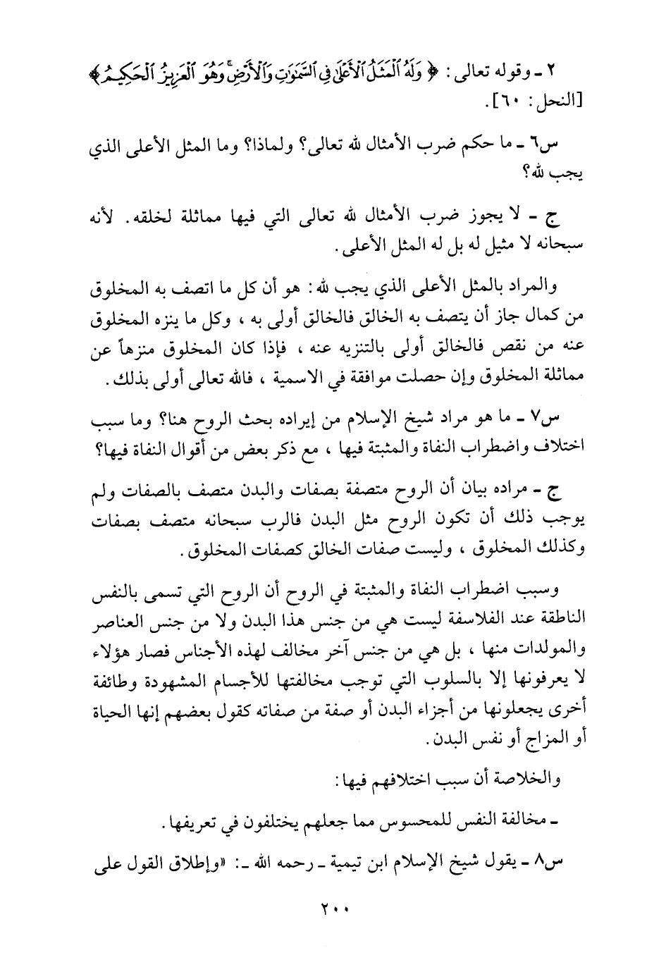 س7 ـ ما هو مراد شيخ الإسلام من إيراده بحث الروح هنا؟ وما سبب اختلاف واضطراب النفاة والمثبتة فيها، مع ذكر بعض من أقوال النفاة فيها؟