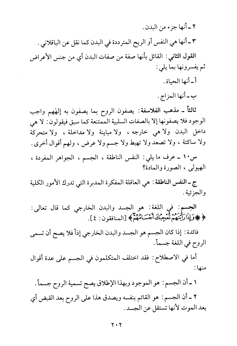 2 ـ أن الجسم هو القائم بنفسه ويصدق هذا على الروح بعد القبض أي بعد الموت لأنها تستقل عن الجسد.
