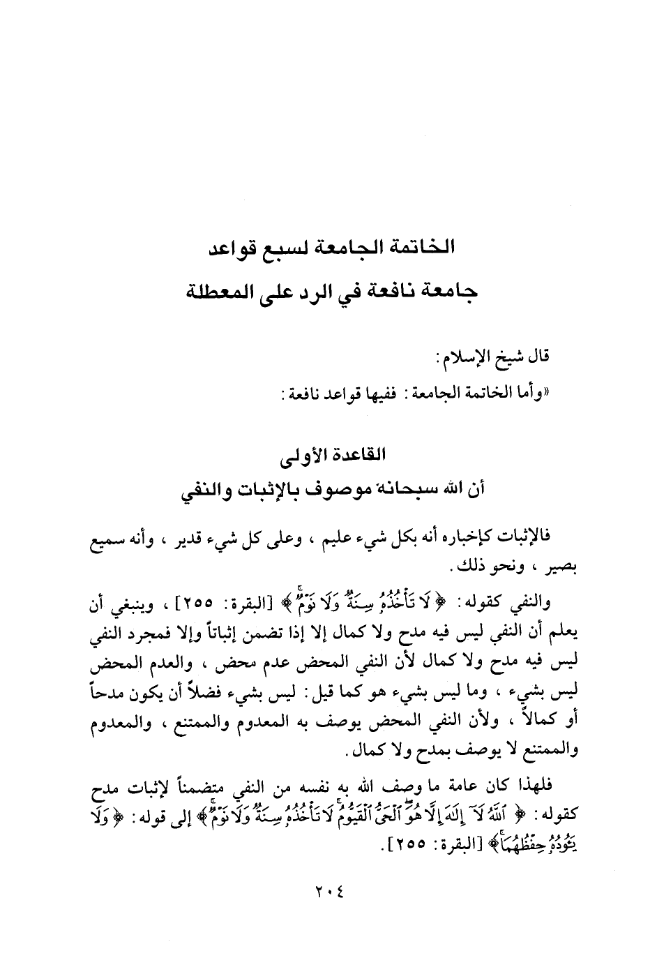" الخاتمة الجامعة لسبع قواعد جامعة نافعة في الرد على المعطلة"