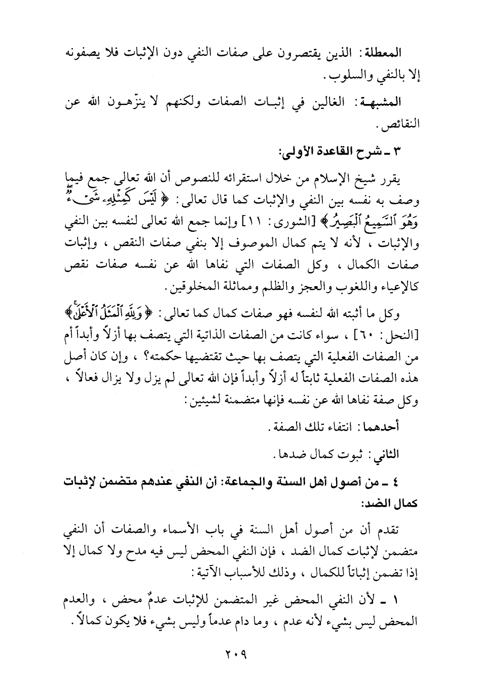 4 ـ من أصول أهل السنة والجماعة: أن النفي عندهم متضمن لإثبات كمال الضد: