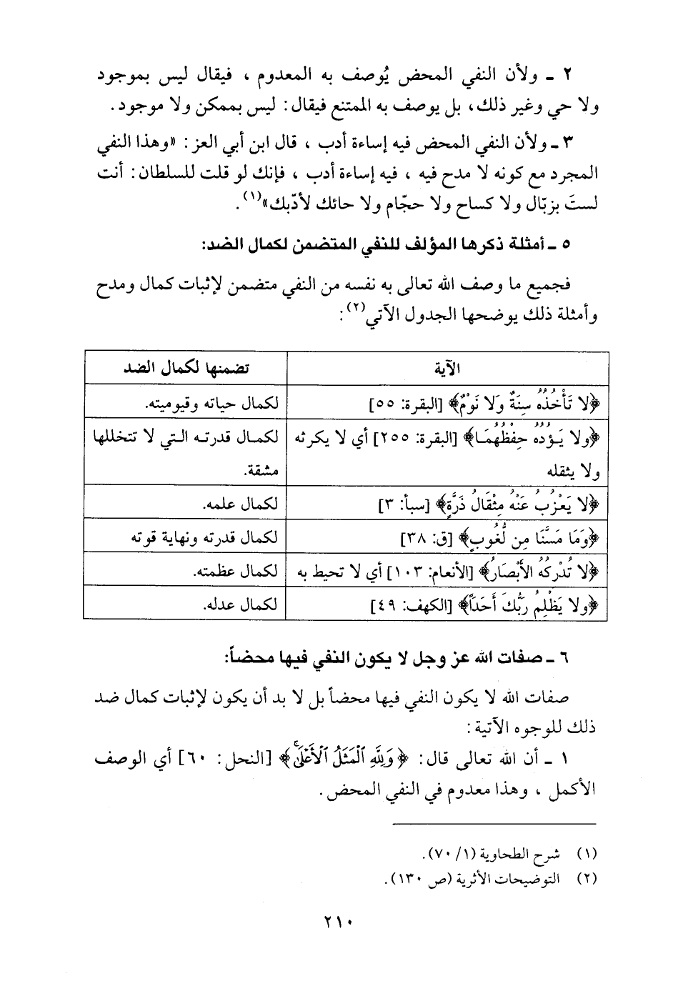 لكمال عدله.6 ـ صفات الله عز وجل لا يكون النفي فيها محضاً:
