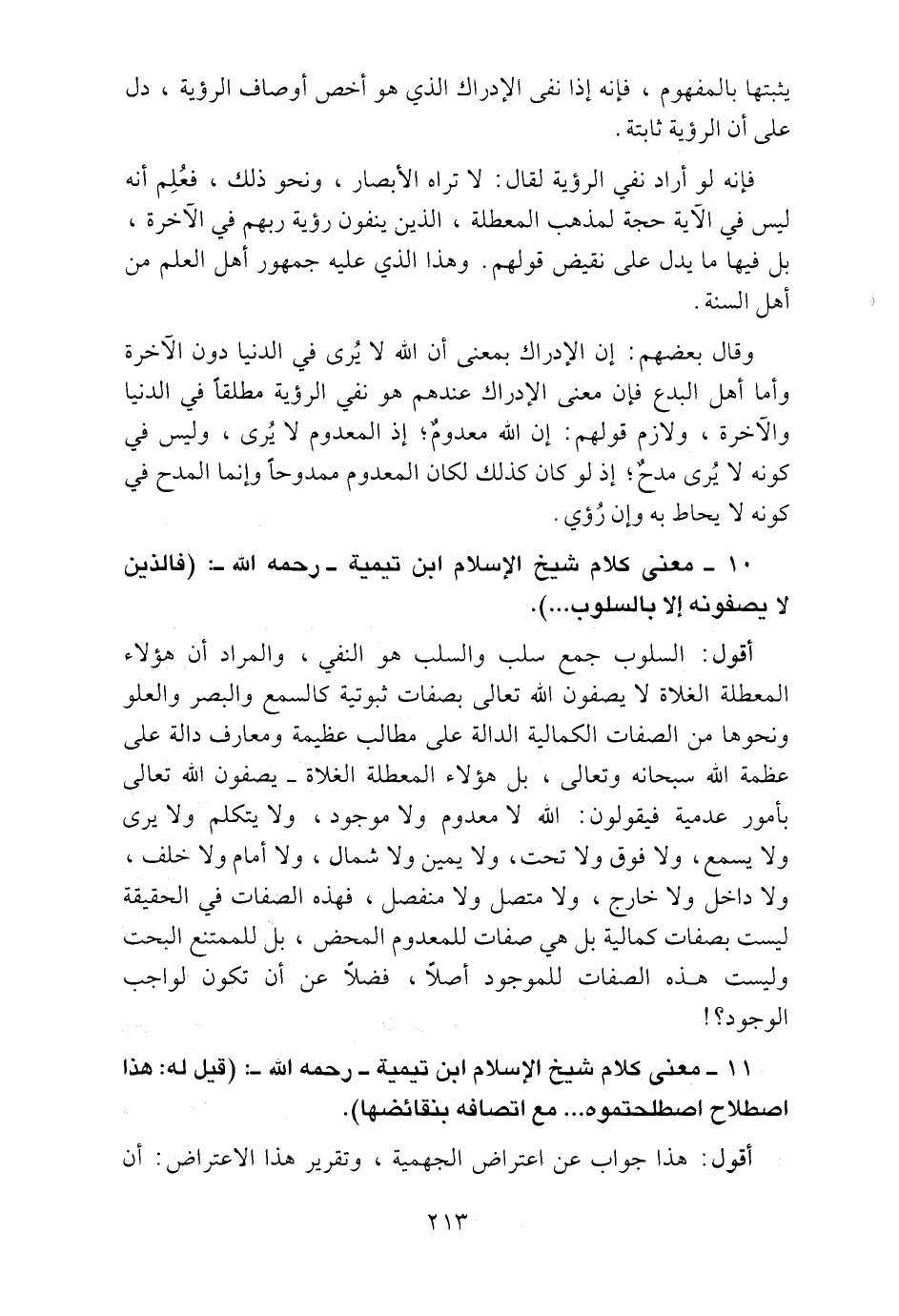 1. ـ معنى كلام شيخ الإسلام ابن تيمية ـ رحمه الله ـ) فالذين لا يصفونه إلا بالسلوب ... ) .