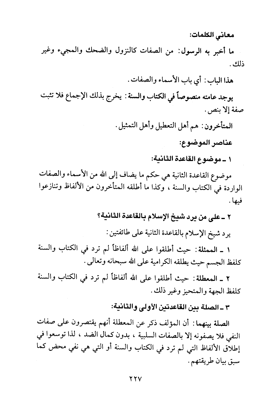 موضوع القاعدة الثانية هي حكم ما يضاف إلى الله من الأسماء والصفات الواردة في الكتاب والسنة، وكذا ما أطلقه المتأخرون في الألفاظ وتنازعوا فيها.