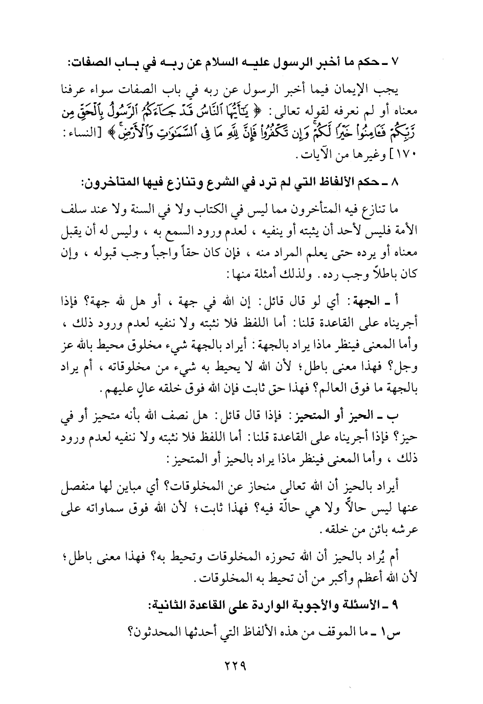 7 ـ حكم ما أخبر الرسول عليه السلام عن ربه في باب الصفات: