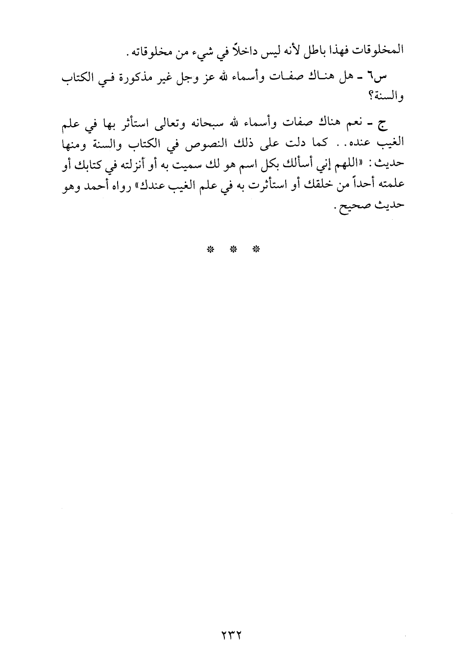 س6 ـ هل هناك صفات وأسماء لله عز وجل غير مذكورة في الكتاب والسنة؟