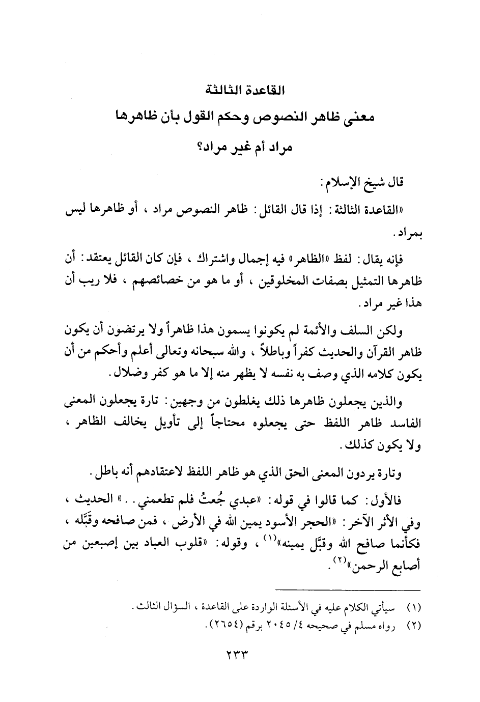 "القاعدة الثالثة: إذا قال القائل: ظاهر النصوص مراد، أو ظاهرها ليس بمراد.