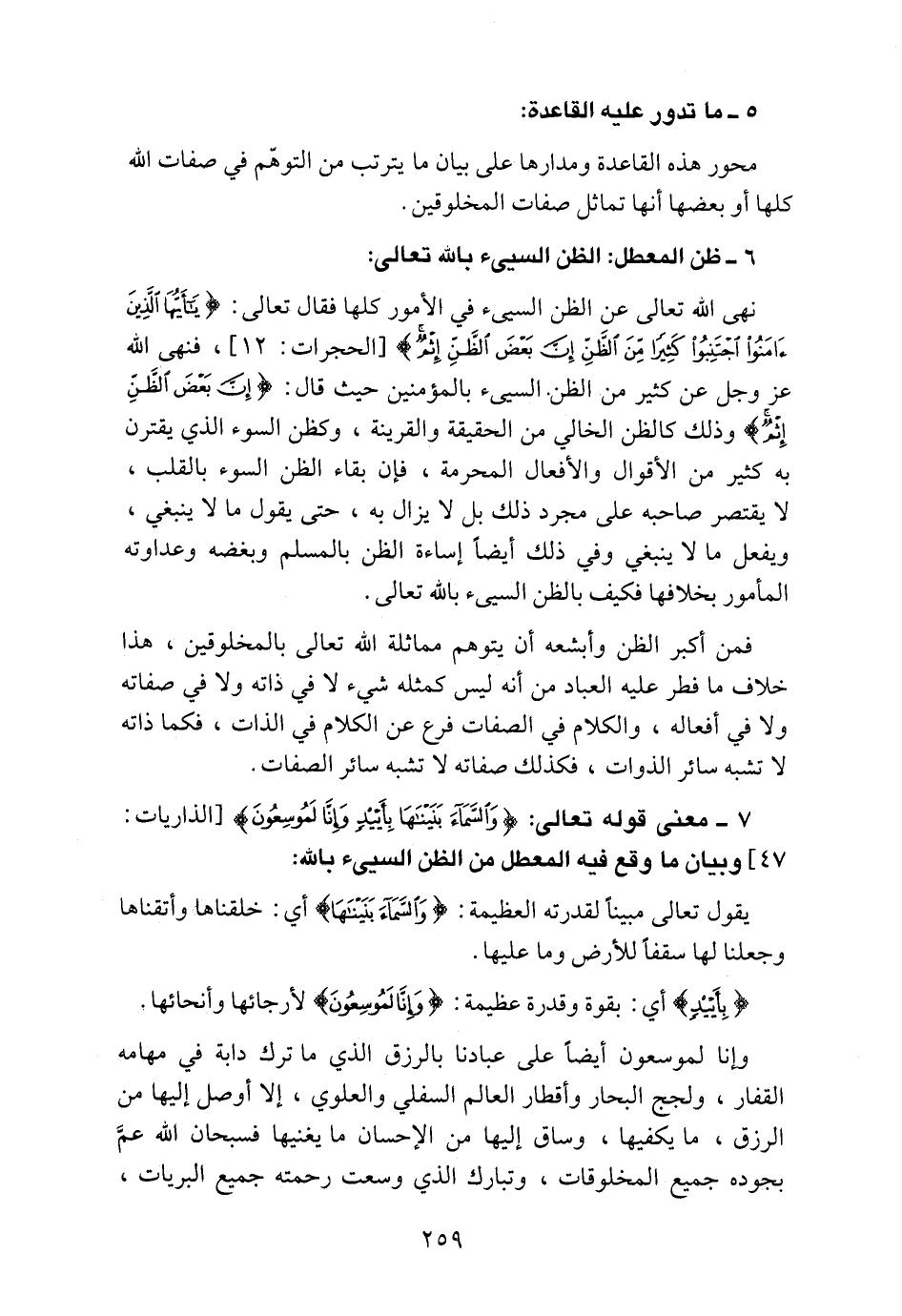 محور هذه القاعدة ومدارها على بيان ما يترتب من التوهم في صفات الله كلها أو بعضها أنها تماثل صفات المخلوقين.