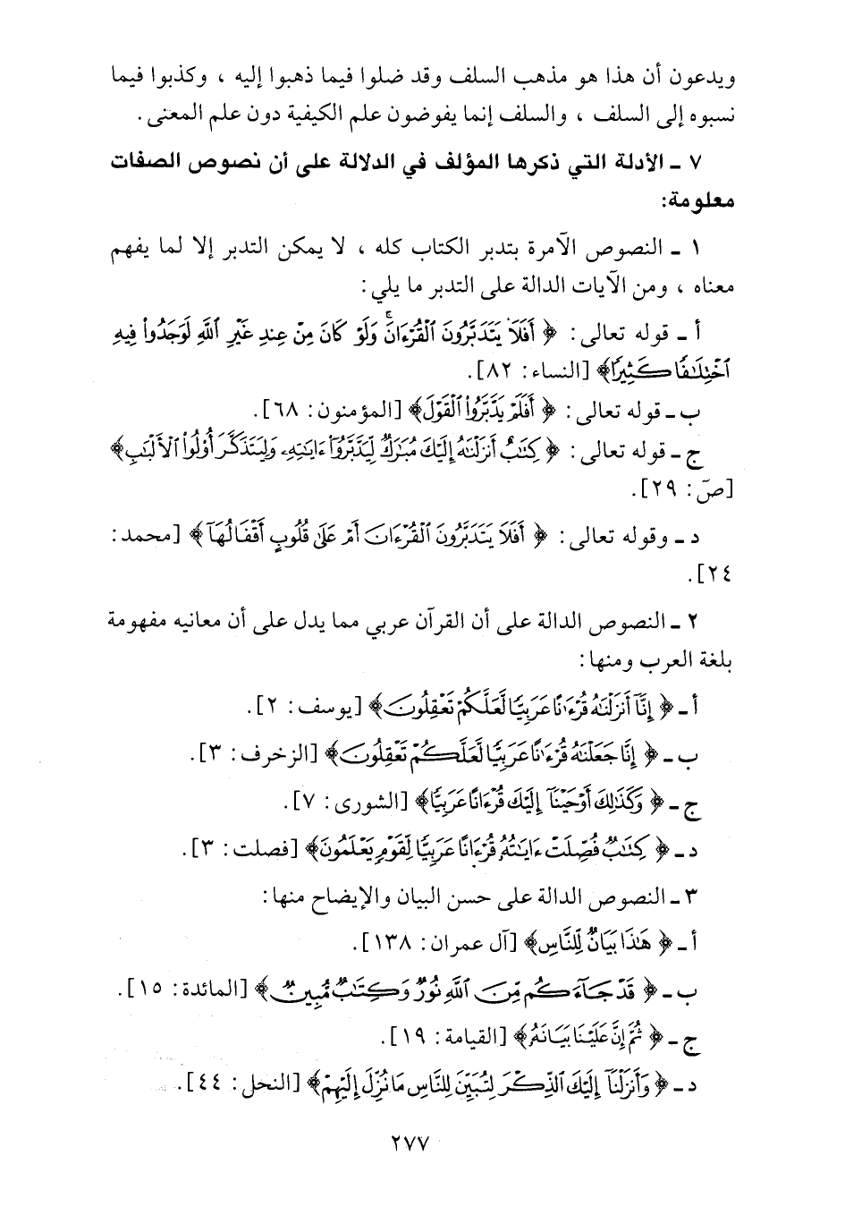 7 ـ الأدلة التي ذكرها المؤلف في الدلالة على أن نصوص الصفات معلومة: