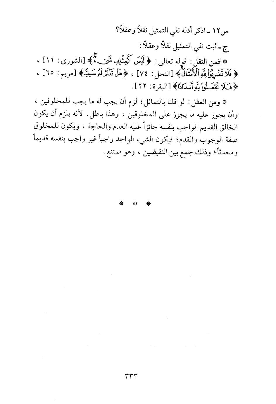 س12 ـ اذكر أدلة نفي التمثيل نقلاً وعقلاً؟
