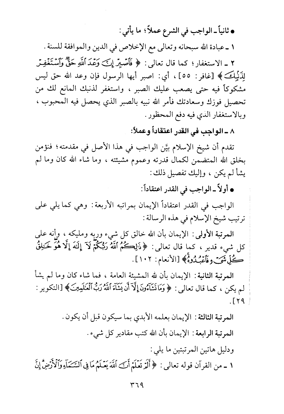 8 ـ الواجب في القدر اعتقاداً وعملاً:
