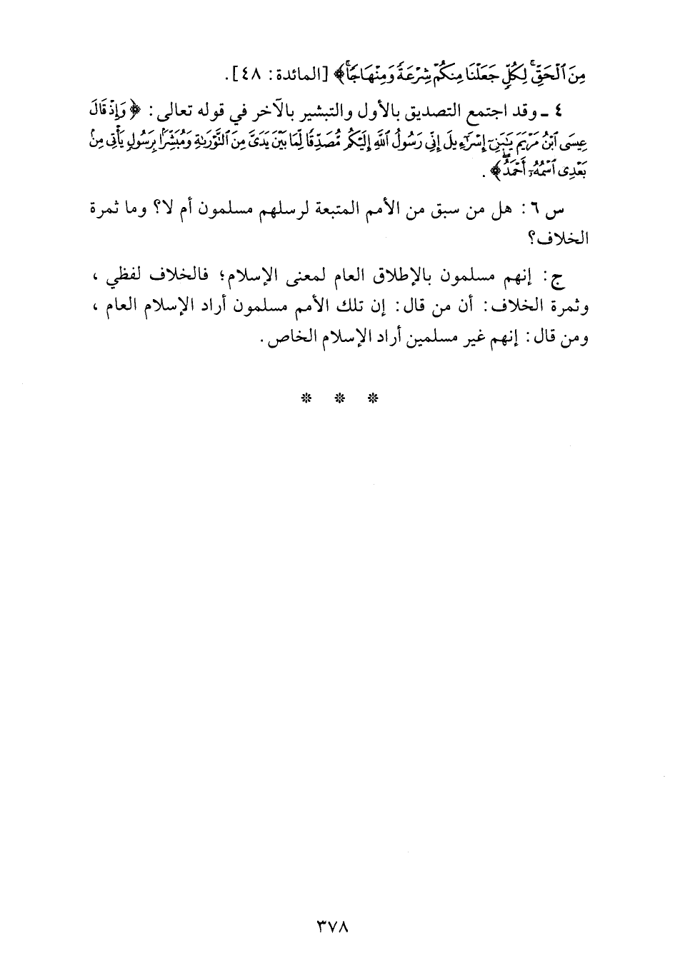 س6: هل من سبق من الأمم المتبعة لرسلهم مسلمون أم لا؟ وما ثمرة الخلاف؟