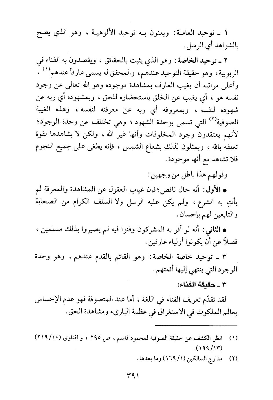 1 انظر الكشف عن حقيقة الصوفية لمحمود قاسم، ص295، والفتاوى (10/219) (13/199) .