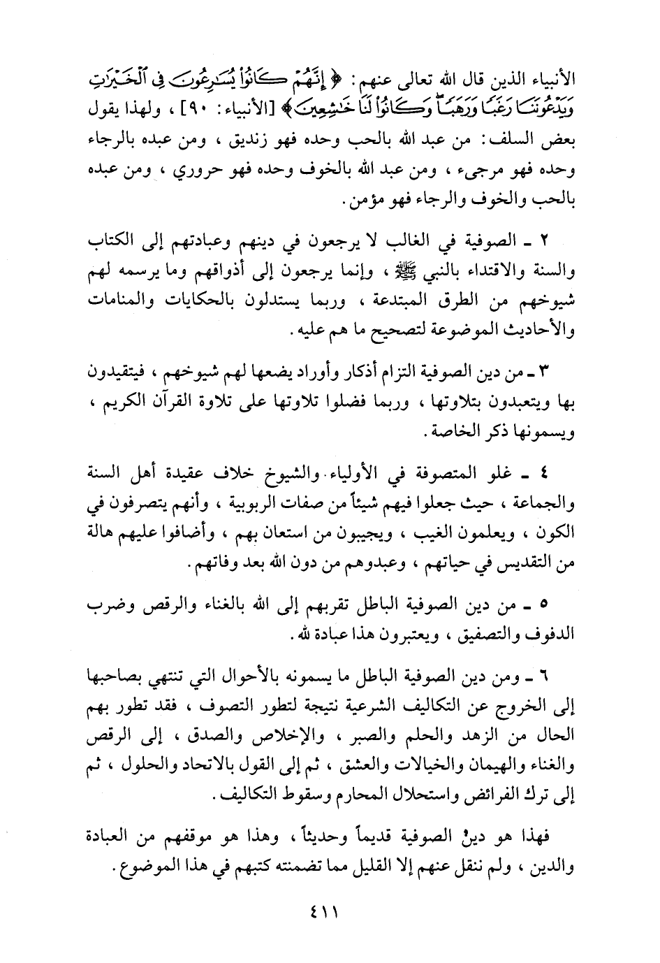 6ـ ومن دين الصوفية الباطل ما يسمونه بالأحوال التي تنتهي بصاحبها إلى الخروج عن التكاليف الشرعية نتيجة لتطور التصوف، فقد تطور بهم الحال من الزهد والحلم والصبر، والإخلاص والصدق، إلى الرقص والغناء والهيمان والخيالات والعشق، ثم إلى القول بالاتحاد والحلول، ثم إلى ترك الفرائض واستحلال المحارم وسقوط التكاليف.