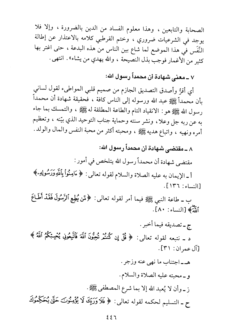 7 ـ معنى شهادة أن محمداً رسول الله: