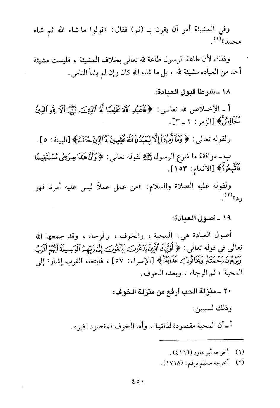 18 ـ شرطا قبول العبادة: