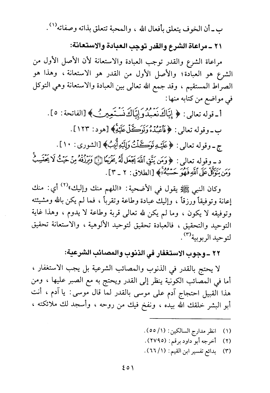 21 ـ مراعاة الشرع والقدر توجب العبادة والاستعانة:
