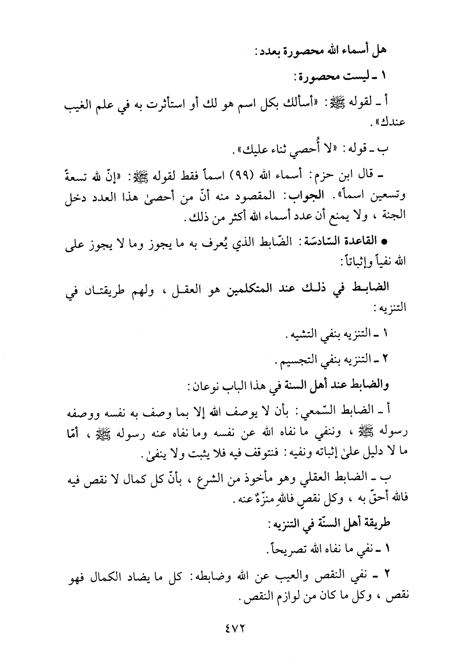 2 ـ نفي النقص والعيب عن الله، وضابطه: كل ما يضاد الكمال فهو نقص، وكل ما كان من لوازم النقص.