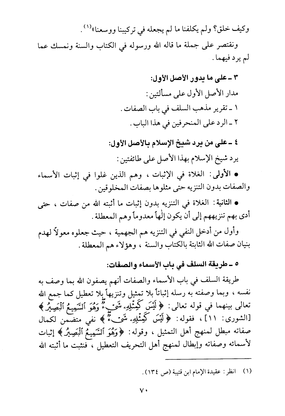 1 ـ تقرير مذهب السلف في باب الصفات.