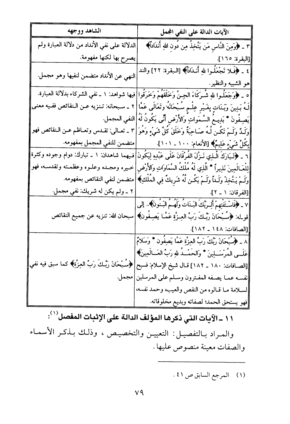 {سُبْحَانَ رَبِّكَ رَبِّ الْعِزَّةِ} كما سبق فيه نفي مجمل.11 ـ الآيات التي ذكرها المؤلف الدالة على الإثبات المفصل1.