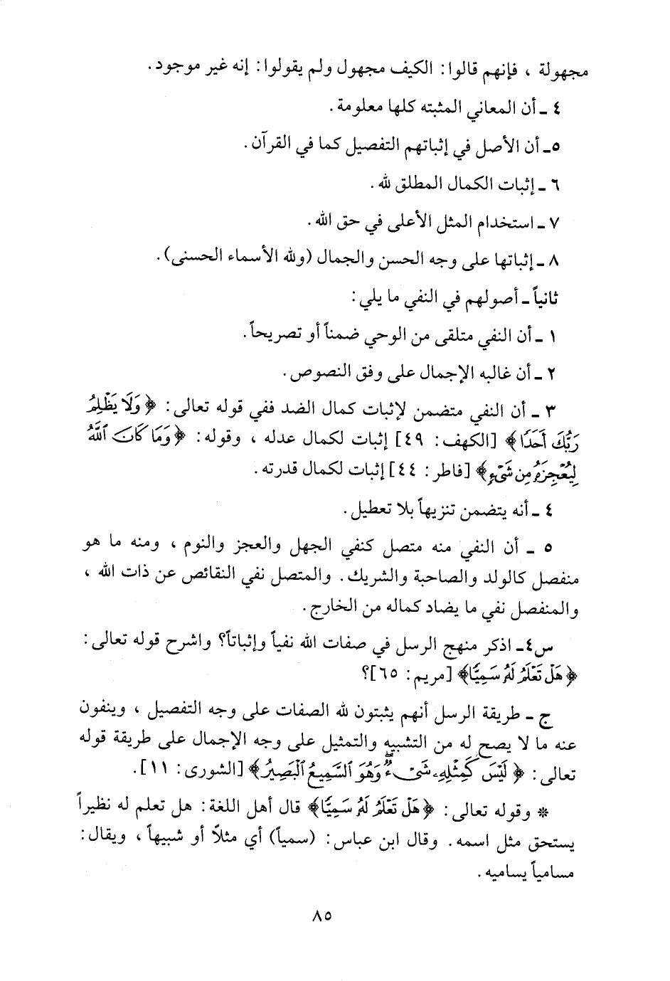 س4ـ اذكر منهج الرسل في صفات الله نفياً وإثباتاً؟ واشرح قوله تعالى: {هَلْ تَعْلَمُ لَهُ سَمِيّاً} [مريم: 65] ؟