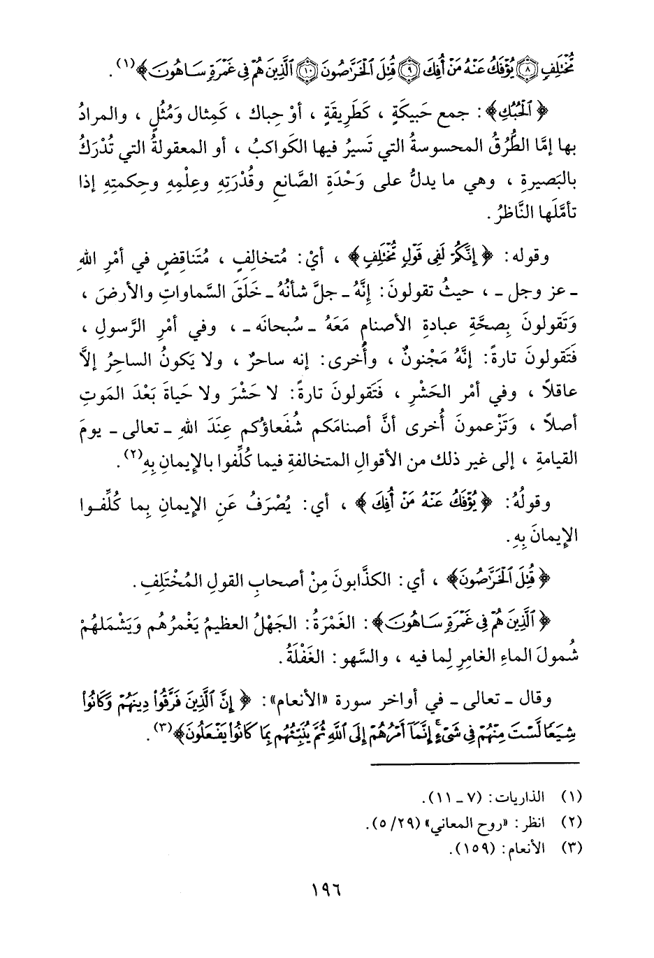 مُّخْتَلِفٍ. يُؤْفَكُ عَنْهُ مَنْ أُفِكَ. قُتِلَ الْخَرَّاصُونَ. الَّذِينَ هُمْ فِي غَمْرَةٍ سَاهُونَ} 1.