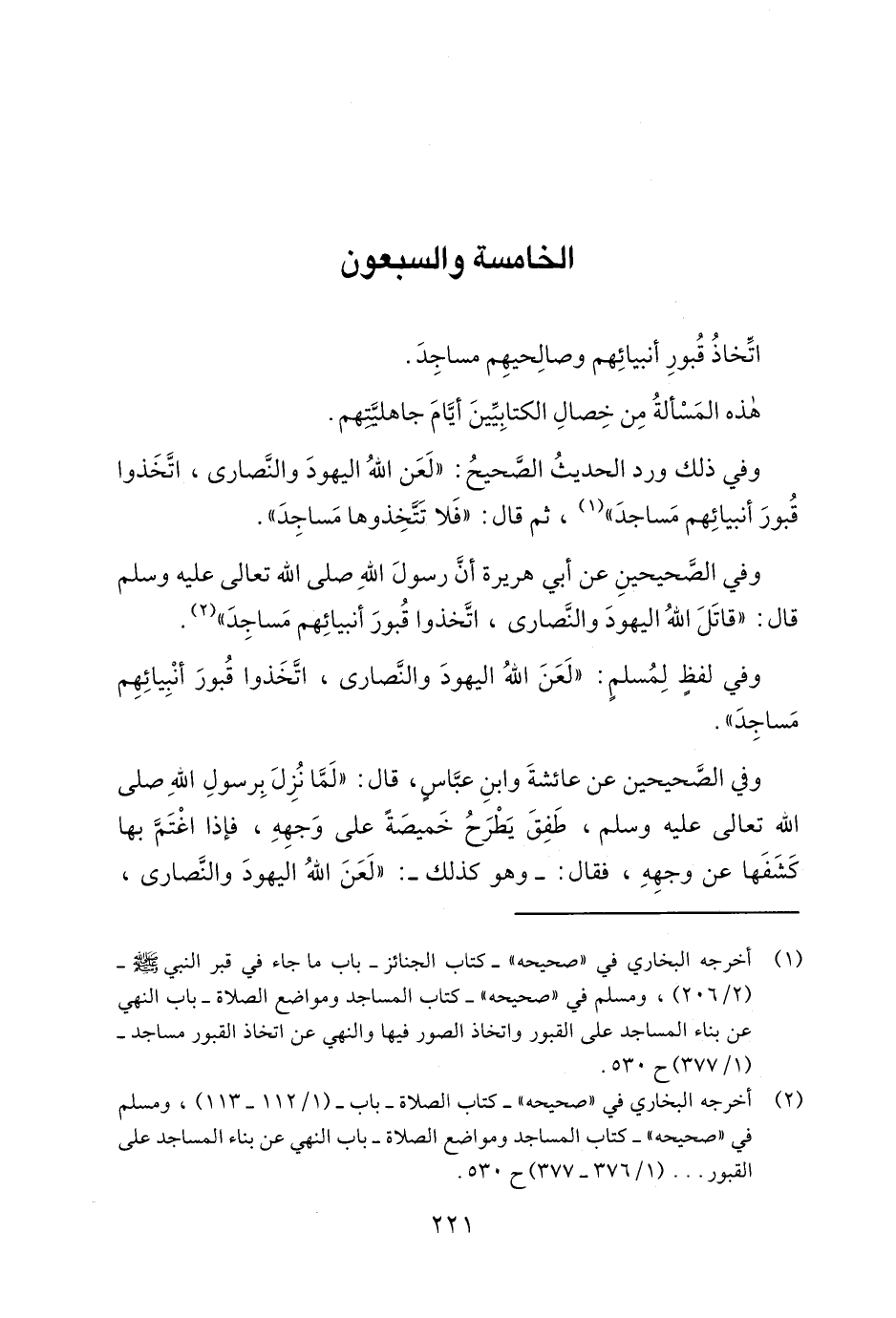 2 أخرجه البخاري في صحيحه- كتاب الصلاة- باب (1/112-113) , ومسلم في صحيحه كتاب المساجد ومواضع الصلاة- باب النهي عن بناء المساجد على القبور ... (1/376-377) ح 530.