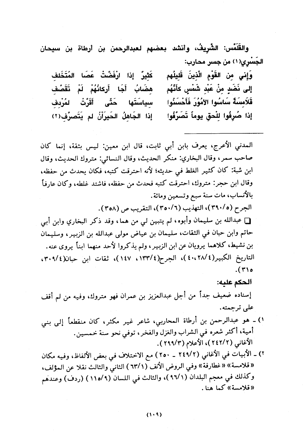 وَالْقَلَمَّسُ: الشَّرِيفُ، وَأَنْشَدَ بَعْضُهُمْ لِعَبْدِ الرَّحْمَنِ بْنِ أَرْطَاةَ بْنِ سَيْحَانَ الْجَسْرِيِّ مِنْ جِسْرِ مُحَارِبٍ.
