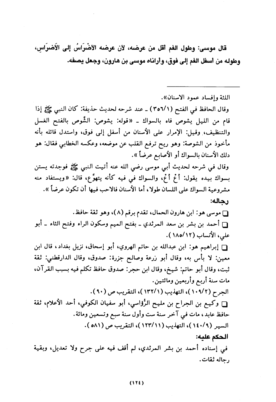 قَالَ مُوسَى: وَطُولُ الْفَمِ أَقَلُّ مِنْ عَرْضِهِ، لِأَنَّ عَرْضُهُ الْأَضْرَاسَ إِلَى الْأَضْرَاسِ، وَطُولُهُ مِنْ أَسْفَلِ الْفَمِ إِلَى فَوْقَ، وَأَرَانَاهُ مُوسَى بْنُ هَارُونَ، وَجَعَلَ يَصِفُهُ
