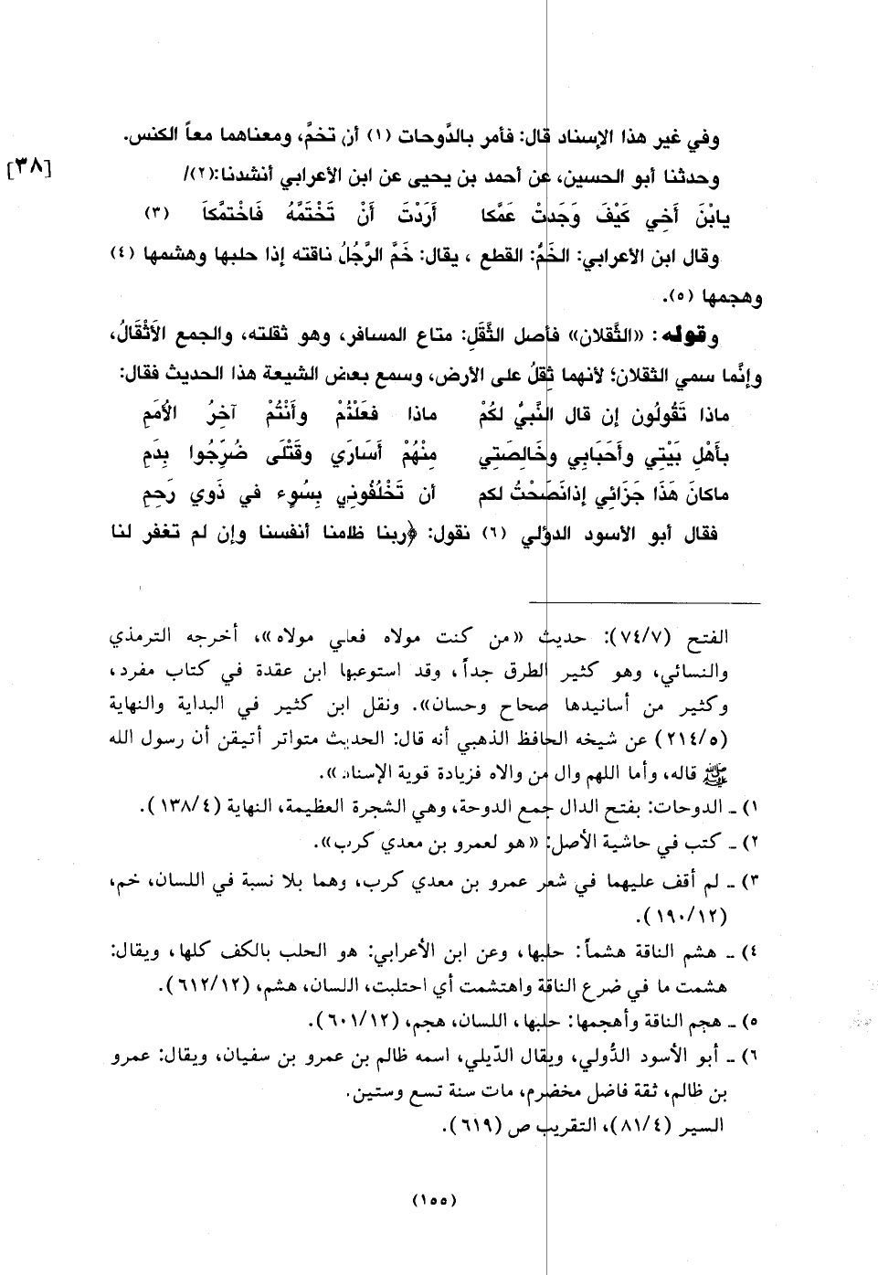 وَحَدَّثَنَا أَبُو الْحُسَيْنِ، عَنْ أَحْمَدَ بْنِ يَحْيَى، عَنِ ابْنِ الْأَعْرَابِيِّ أَنْشَدَنَا: