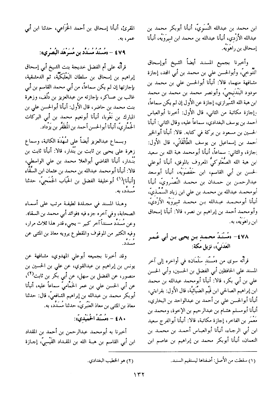 479 - مُسْند مُسَدّد بن مسرهد الْبَصْرِيّ