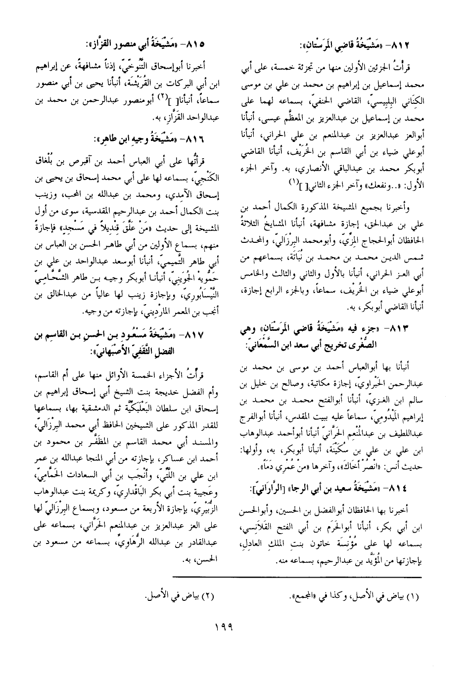 813 - جُزْء فِيهِ مشيخة قَاضِي المرستان وَهِي الصُّغْرَى تَخْرِيج أبي سعد ابْن السَّمْعَانِيّ
