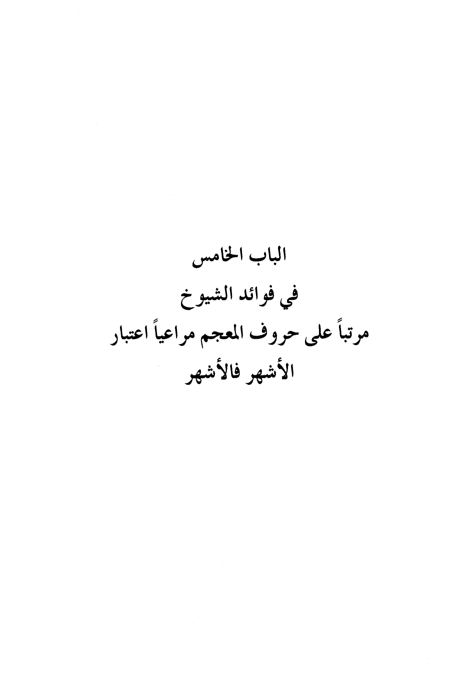 الْبَاب الْخَامِس فِي فَوَائِد الشُّيُوخ مُرَتبا على حُرُوف المعجم مراعيا اعْتِبَار الْأَشْهر فالأشهر