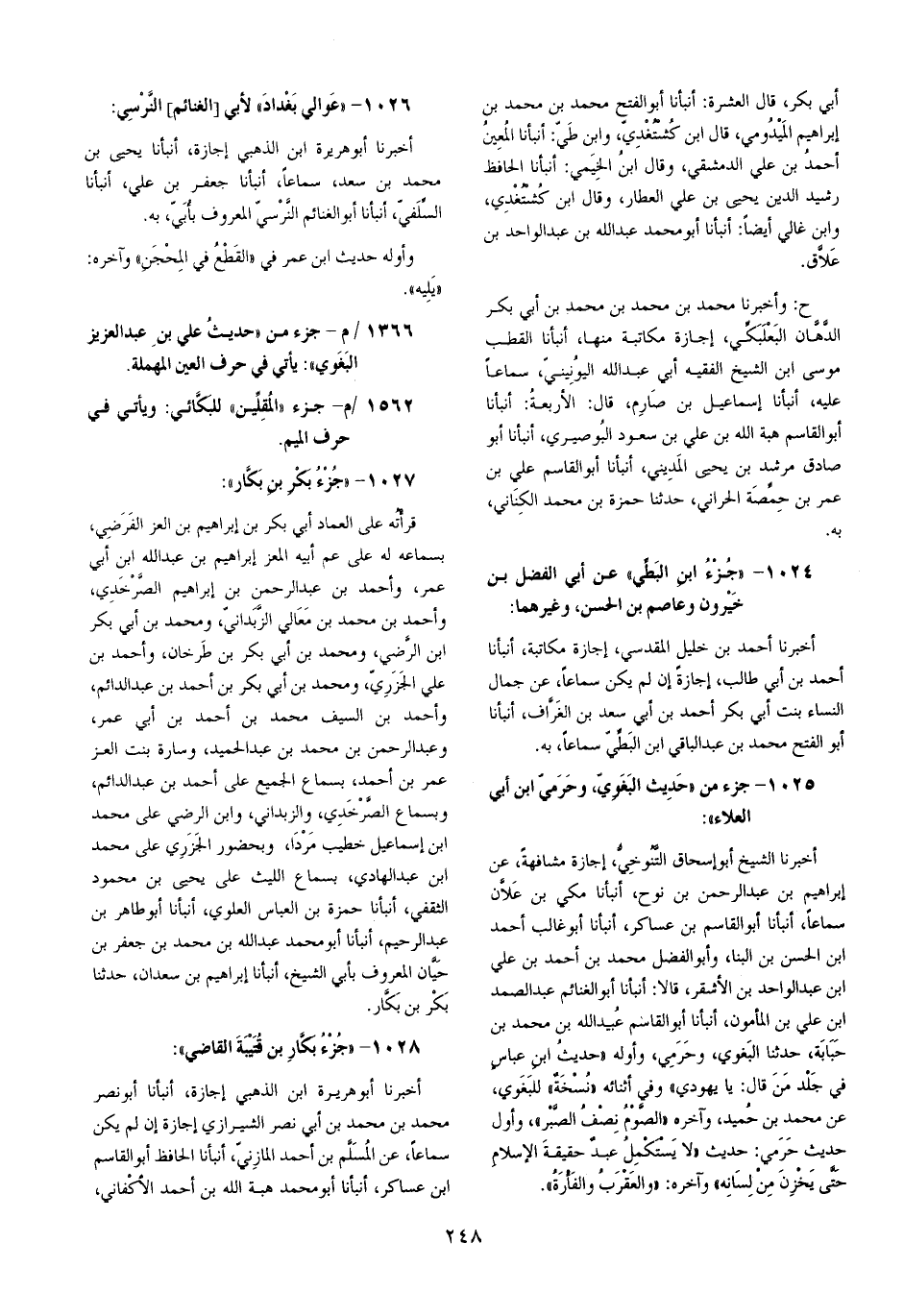 1024 - جُزْء ابْن البطي عَن أبي الْفضل بن خيرون وَعَاصِم بن الْحسن وَغَيرهمَا
