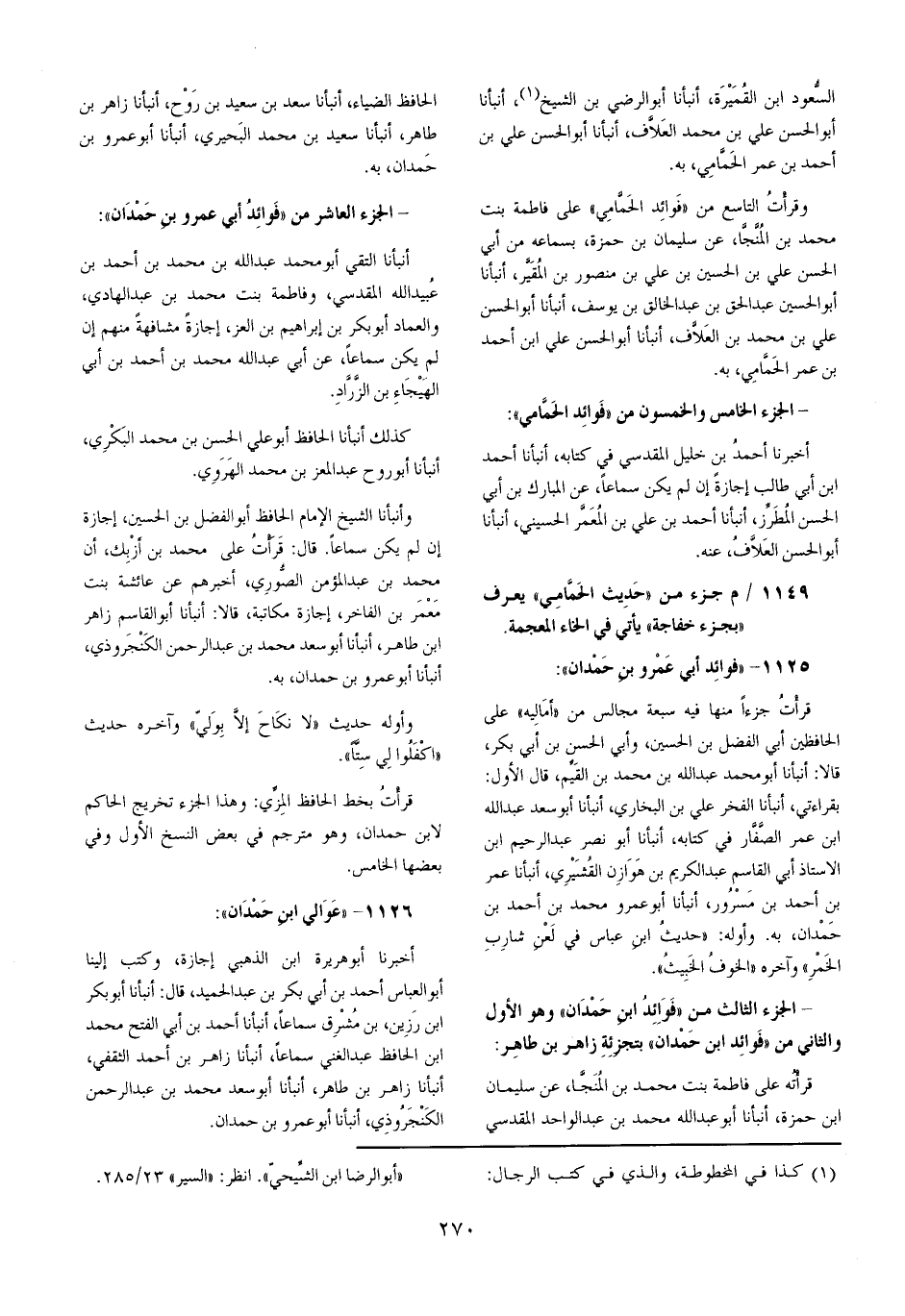 1149 - / م جُزْء من حَدِيث الحمامي يعرف بِجُزْء خفاجة يَأْتِي فِي الْخَاء الْمُعْجَمَة