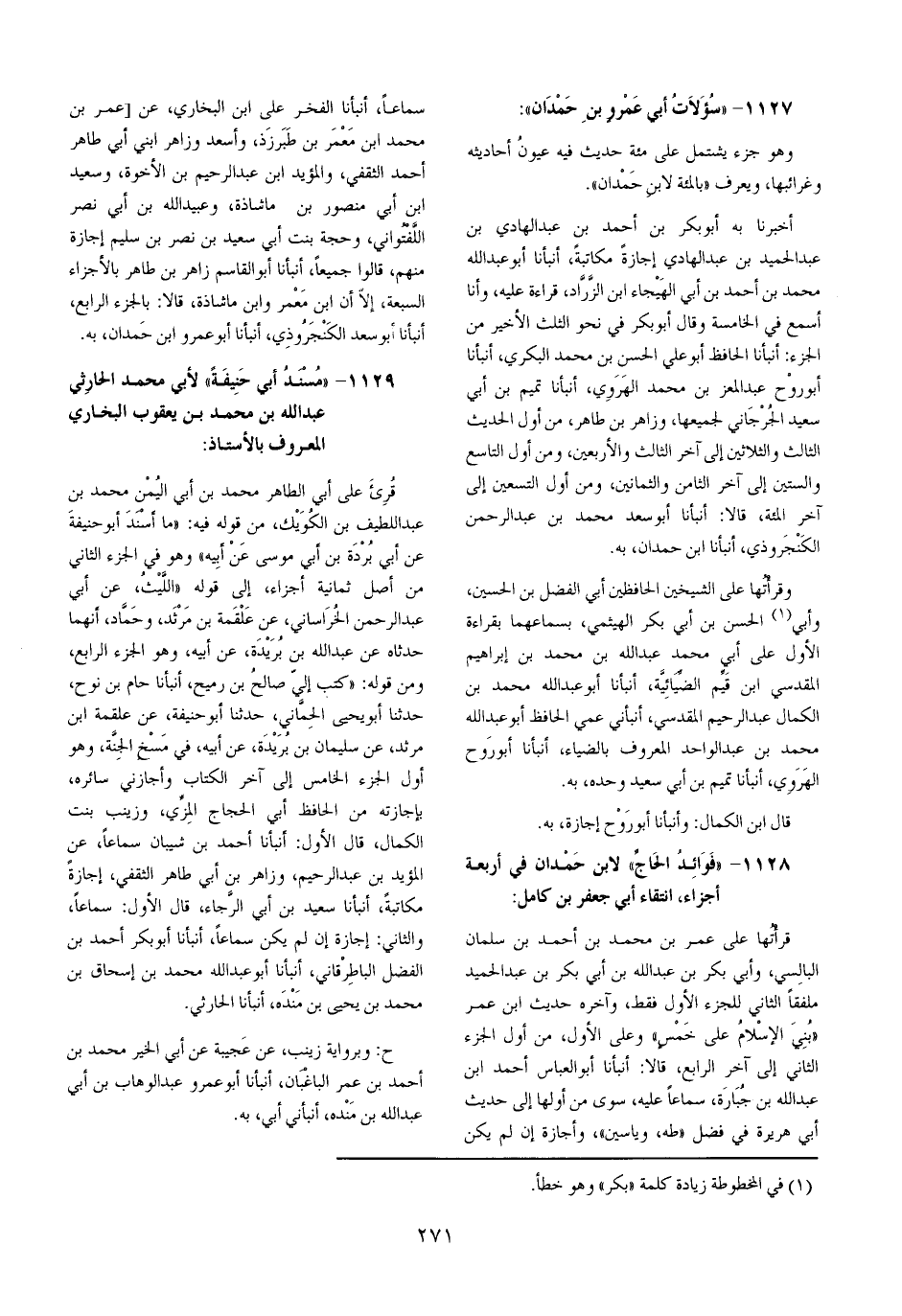 1128 - فَوَائِد الْحَاج لِابْنِ حمدَان فِي أَرْبَعَة أَجزَاء انتقاء أبي جَعْفَر بن كَامِل