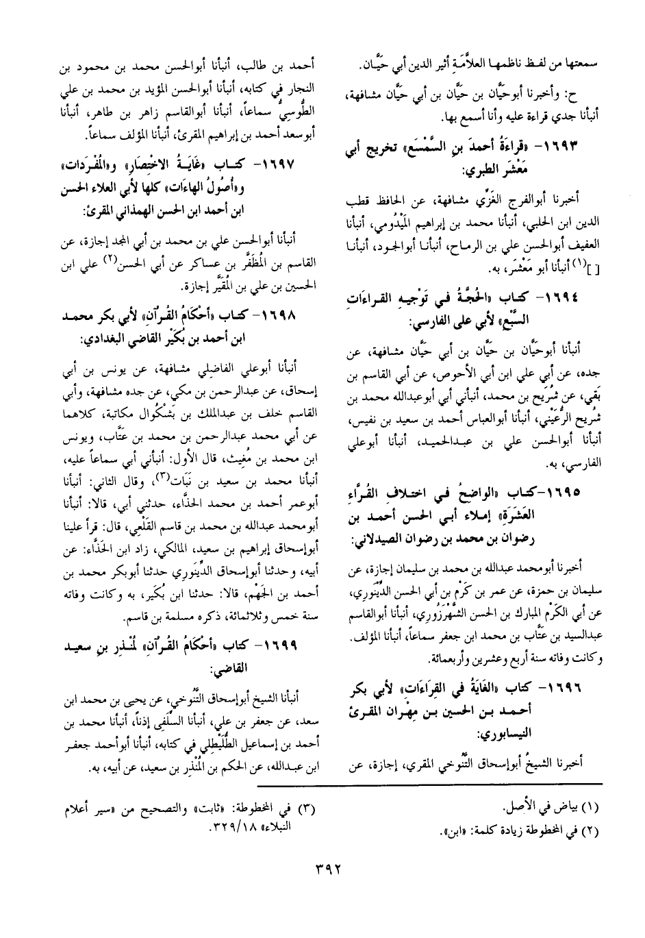 ح وَأخْبرنَا أَبُو حَيَّان بن حَيَّان بن أبي حَيَّان مشافهة أَنبأَنَا جدي قِرَاءَة عَلَيْهِ وَأَنا أسمع بهَا
