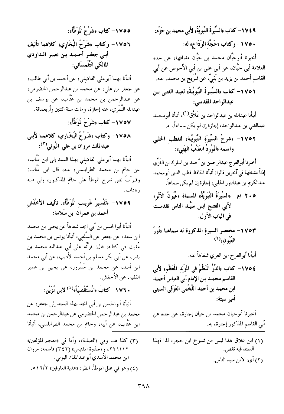 أَنبأَنَا بهما أَبُو عَليّ الفاضلي بِهَذَا السَّنَد إِلَى ابْن عتاب عَن حَاتِم بن مُحَمَّد الطرابلسي عَنهُ قَالَ ابْن عتاب وقرأت نَص شرح الْمُوَطَّأ على حَاتِم الْمَذْكُور ولي فِيهِ زيادات