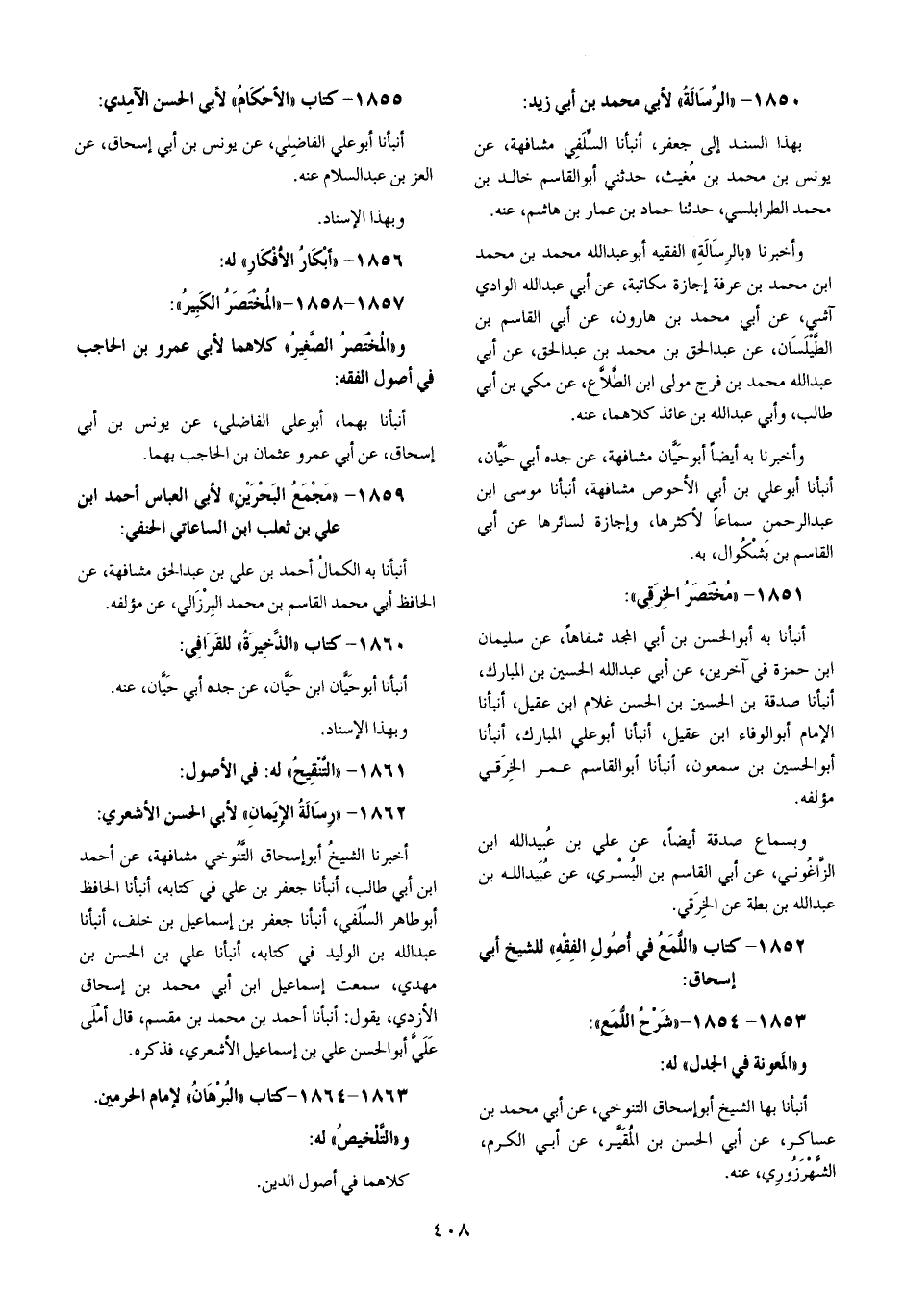 1857 - 1858 الْمُخْتَصر الْكَبِير والمختصر الصَّغِير كِلَاهُمَا لأبي عَمْرو بن الْحَاجِب فِي أصُول الْفِقْه