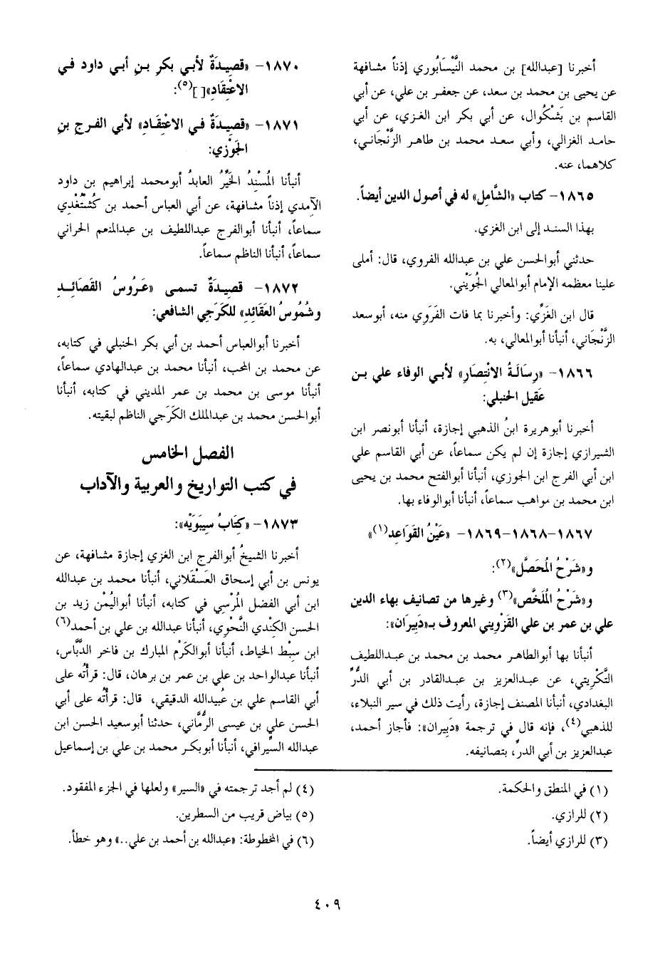 الْفَصْل الْخَامِس فِي كتب التواريخ والعربية والآداب