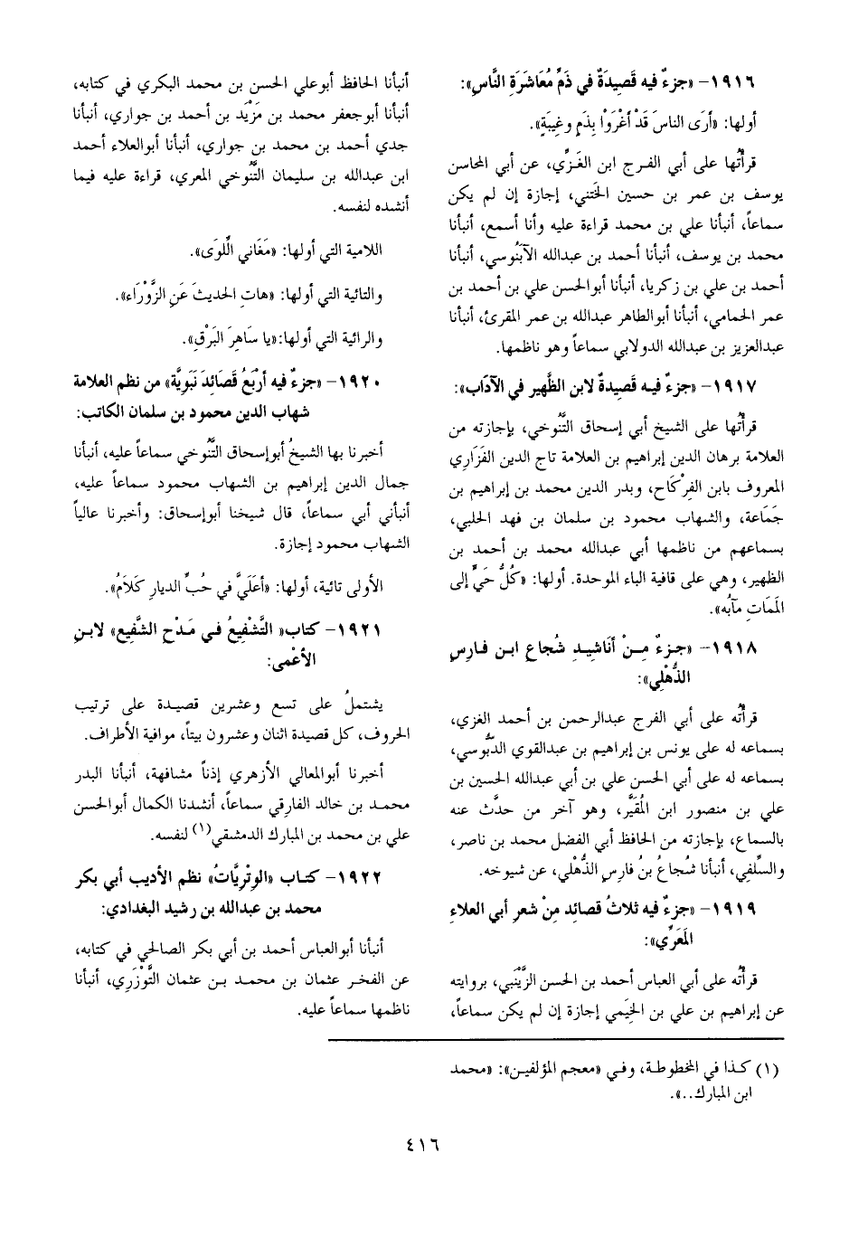 1918 - جُزْء من أناشيد شُجَاع ابْن فَارس الذهلي