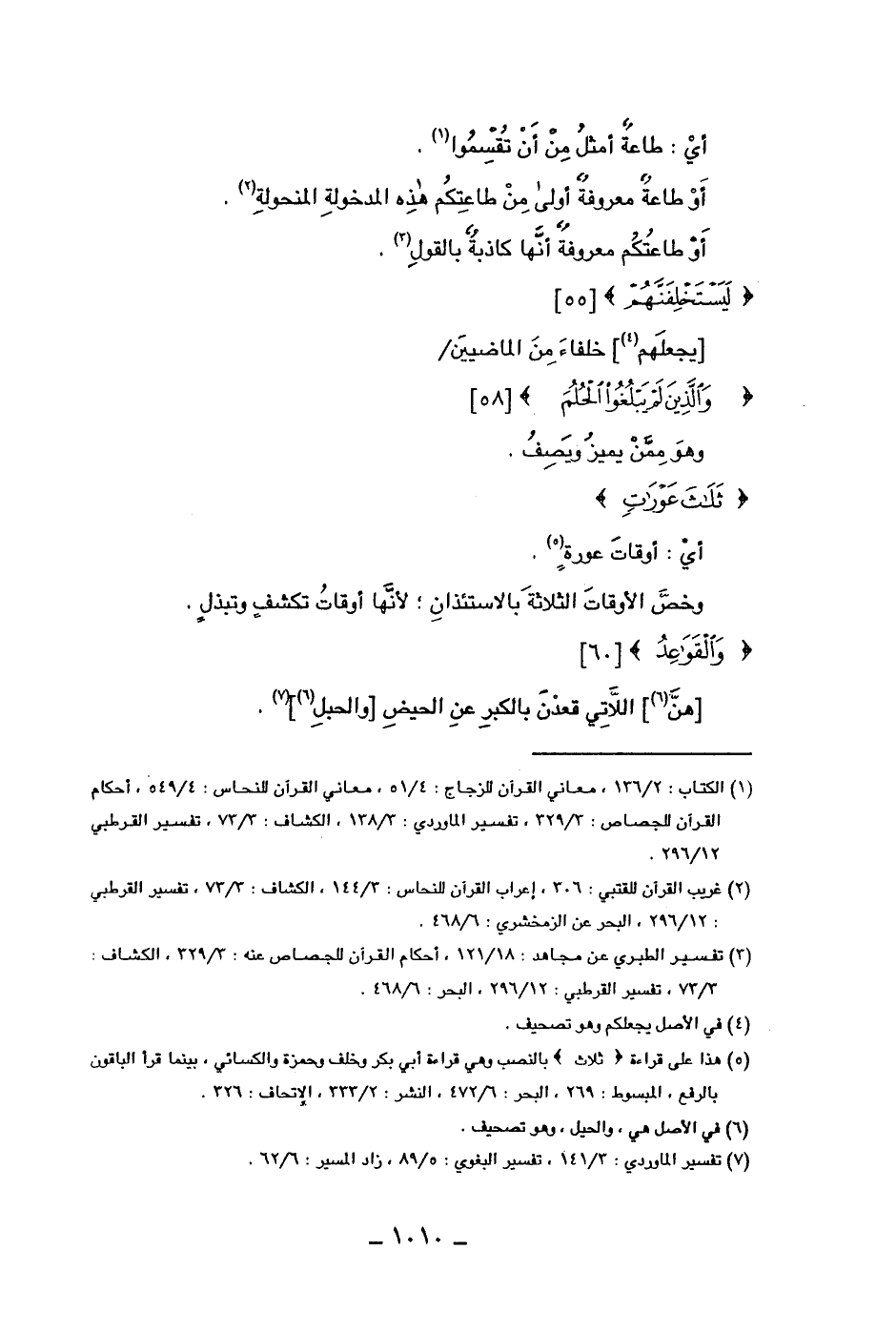 وخص الأوقات الثلاثة بالاستئذان، لأنها أوقات تكشف وتبذل. (والقواعد)