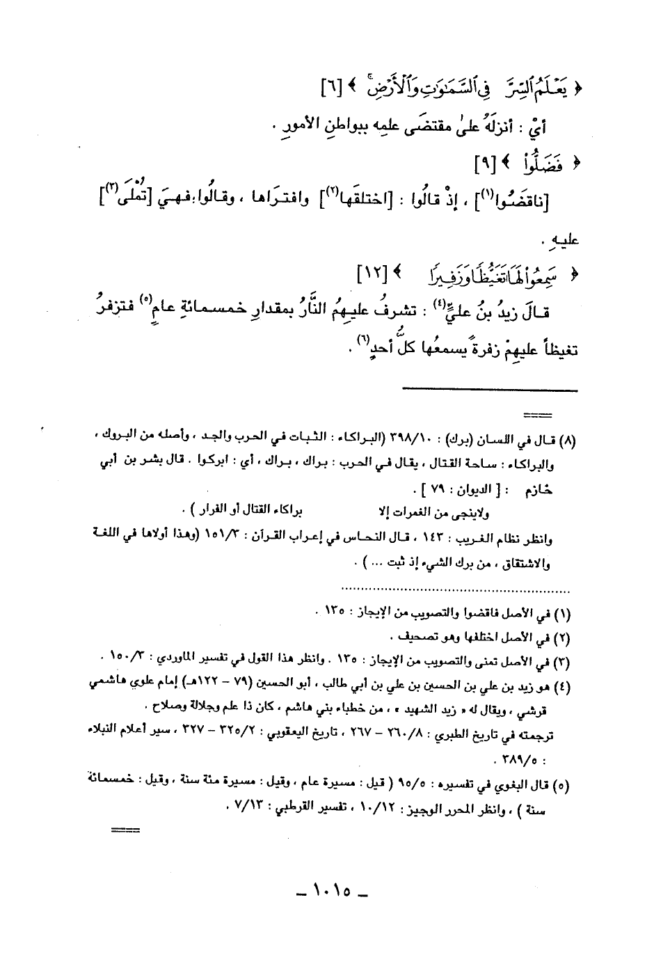 قال زيد بن علي: تشرف عليهم النار بمقدار خمسمائة عام فتزفر تغيظاً عليهم زفرة يسمعها كل أحد.